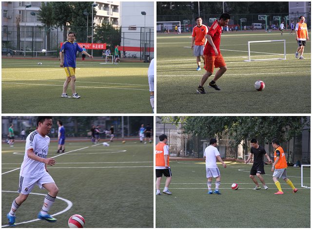 开场后,双方队员们你争我抢,积极奔跑,认认真真的完成传球、抢断、停球、过人、射门等每一个技术动作。经过十几分钟的磨合,学校办公室队员们更是逐渐形成了默契,不断打出精彩的传接配合,赢得了拉拉队的欢呼和称赞。赛场上,双方本着“友谊第一,比赛第二”的宗旨,队员们的动作文明礼貌,比赛氛围更是和谐、欢快。大家挥汗如雨、顽强拼搏,经过一个多小时的激烈比赛,最终双方以5:5握手言和,比赛圆满结束。