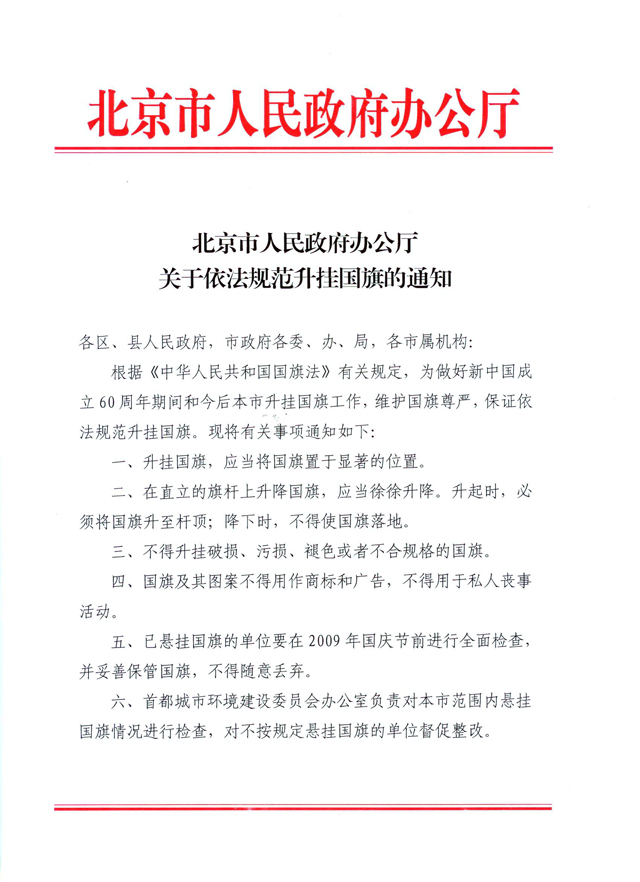 转发北京市人民政府办公厅关于依法规范升挂国旗的通知