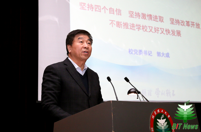 校党委书记郭大成作了题为《坚持四个自信 坚持激情进取 坚持改革开放不断推进学校又好又快发展》的讲话。讲话从四个方面分析了学校发展的形势、问题和不足。