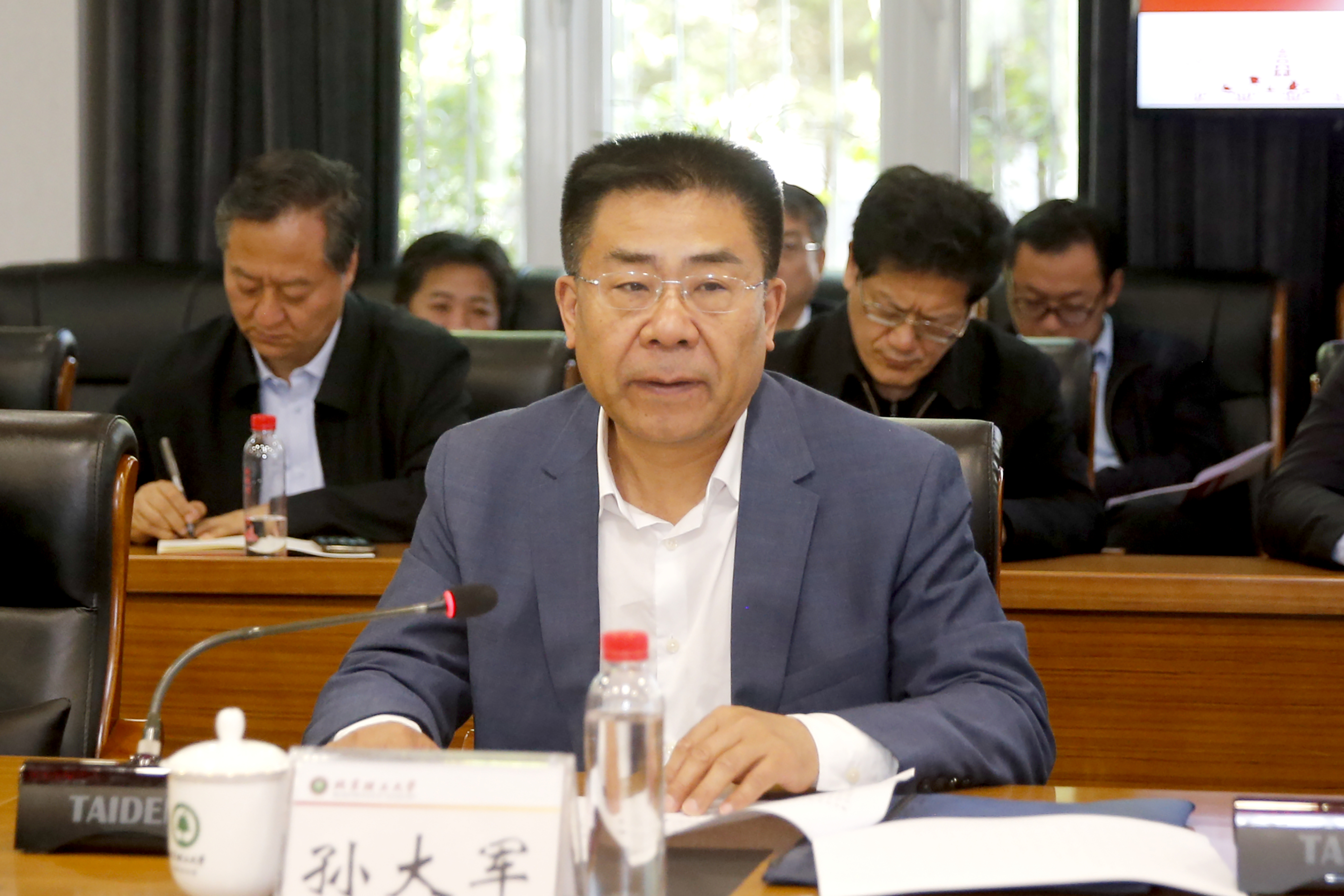 张军对孙大军一行的到来表示欢迎,对吕梁市、方山县在经济社会发展和乡村振兴事业中取得的成绩表示祝贺,对学校各单位、全体师生校友和挂职干部的担当作为表示感谢。他强调,各单位要进一步谋划新阶段、新形势下的定点帮扶工作,锚定“美丽幸福吕梁”和“四宜”方山建设目标,不折不扣完成各项定点帮扶工作任务。一是要进一步提高政治站位,保持发展定力。始终把深入开展定点帮扶、助力乡村振兴作为落实中央决策部署的具体行动,保持帮扶力度不减,巩固定点帮扶成果。同时要解放思想、守正创新,持续拓展帮扶领域、完善帮扶机制,不断探索服务乡村振兴的新思路、新路径、新模式。二是要进一步助力产业发展,激发振兴活力。充分发挥科学技术、人才资源等方面的优势,打造可持续发展电商生态体系,促进方山特色农业产业发展;推动乡村旅游重点村建设,为文旅康养产业贡献“北理工方案”;聚焦氢能领域关键技术和设备开发,助力吕梁市培育新能源领域新质生产力。三是要进一步加强协同联动,汇聚工作合力。充分发动全校师生、校友的力量,探索更多校地合作、校企合作、校际合作融合共赢机制,为助力吕梁市和方山县全面推进乡村振兴贡献北理工力量。