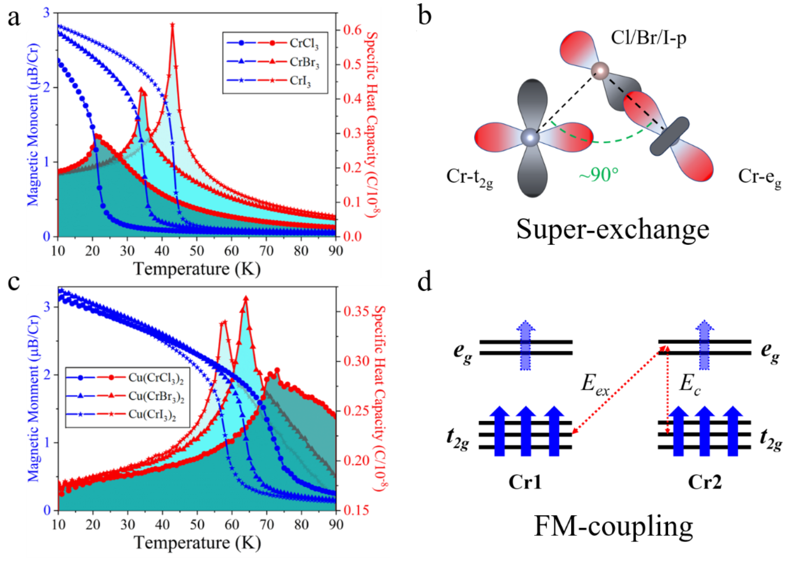 图3 CrX3和Cu(CrX3)2的磁性